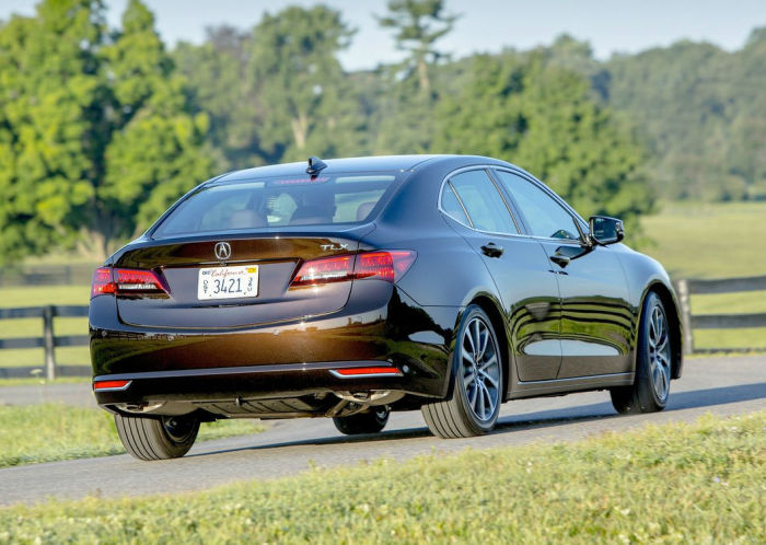 И дизайн такой же стремительный, в нем явно прослеживается спортивность. Ну а за премиальность тут отвечают полностью светодиодные фары. Но если спереди машина узнаваема и оригинальна, то над оформлением задней части дизайнеры заморачиваться не стали. Скучновата и очень уж похожа корма нового Acura TLX на все современные японские модели… да и не только японские.