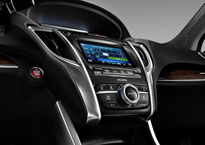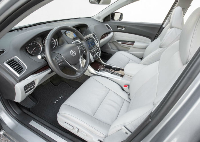 Внутри все на заметно более высоком уровне, чем в «массовом» Honda Accord. Приятный мягкий пластик, удобный руль, тач-скрин дисплей с тактильным эффектом — кстати, неплохо работающий, хотя задержки, безусловно, есть. Но в целом остается ощущение «недопремиальности». Что-то тут не так. Может быть, портят впечатление бутафорские вставки под дерево, может быть, не хватает кожаной отделки на приборке, или бархатистого эффекта… а, возможно, Acura TLX просто недостает классики и практичности в оформлении интерьера, к которому приучили немецкие производители.