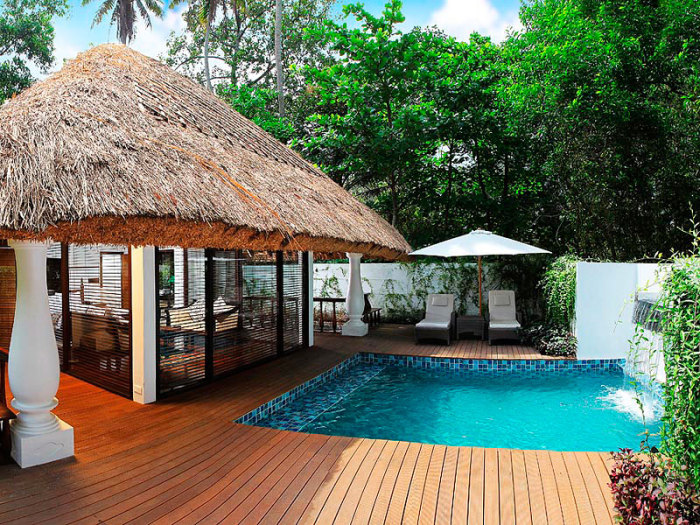 Мария Дашкевич«Пологая зеленая территория, кокосовая роща, очень много растений, шикарные отдельно стоящие виллы. Там даже стандартная вилла — огромная, просторная, со всей необходимой наполненностью, инфраструктурой, причем виллы расположены так, что никто друг другу не надоедает, полная приватность. SPA очень хорошего уровня, больше, конечно, аюрведических процедур. Можно взять европейские, но их немного. Там работают племянники доктора Али, очень хорошие опытные массажисты марма-массажа. Это одна из разновидностей массажа силового по точкам, по меридианам. И в любую пакетную программу Carnoustie входят две процедуры каждый день: одна основная аюрведическая, и плюс во второй половине дня марма-массаж либо всего тела, либо ног, либо рук, либо плечевого отдела, шейного, поясничного и так далее».