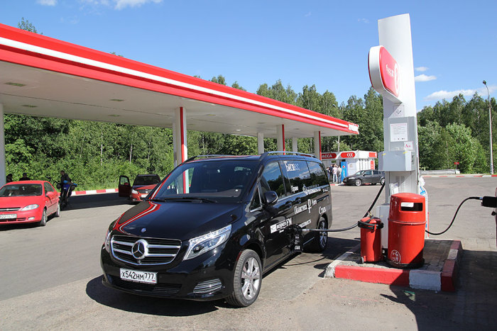 Mercedes-Benz V-Класс, несмотря на габариты и вес, оказалась практически «вегетарианцем». На сотню машина потребляла чуть больше восьми литров, и в результате на поездку от Москвы до Санкт-Петербурга мы потратили всего две тысячи рублей на дизельное топливо.