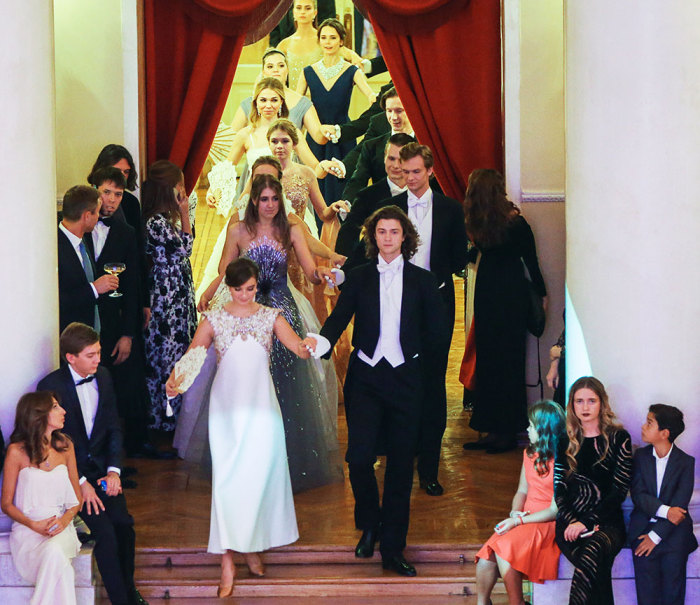 Лиза Пескова пришла в сопровождении своей мамы и бабушки с дедушкой. Сам Дмитрий Песков, впрочем, не появился. В толпе мелькают лица четы Стриженовых и Ирины Апексимовой. Шлейф платья дочери Нонны Гришаевой помогает нести мальчик. Среди дебютанток еще дочери Тины Канделаки и Веры Брежневой — артистическая молодежь, мало бизнеса.