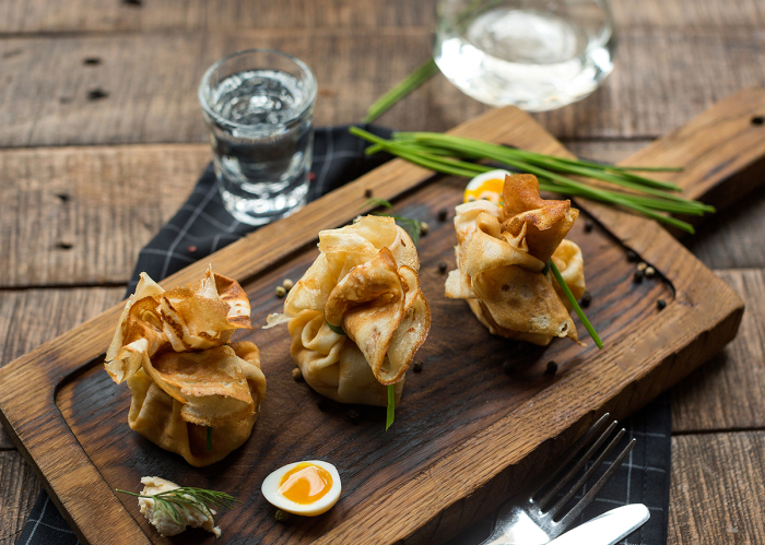 Говорят, что золотистый румяный блин в славянской традиции — символ солнца. Сидя под стеклянным куполом панорамного ресторана White Rabbit можно будет сравнить и то, и другое. А потом съесть! С черной икрой осетра или красной икрой нерки, со спинкой копченой форели или фирменным форшмаком, с вологодским маслом или деревенской сметаной, и еще заказать к чаю — со сгущенным молоком, каштановым или лавандовым медом и самым разным вареньем. В масленичном меню White Rabbit — больше дюжины разнообразных начинок, которые можно попробовать со знаменитыми боярскими блинами, приготовленными по старому русскому рецепту из пшеничной и гречневой муки на кефире.