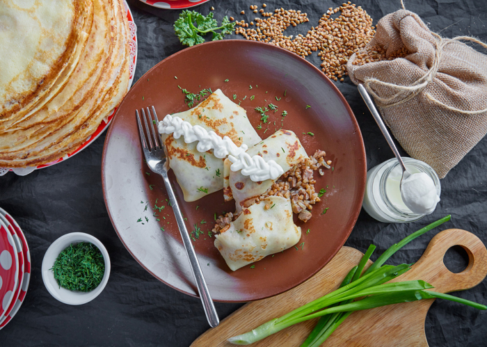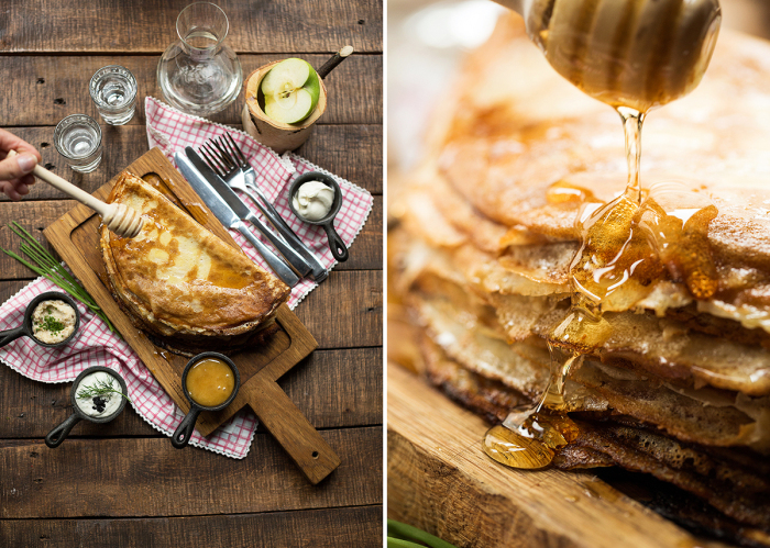 Шеф-повар Selfie Анатолий Казаков к масленичной неделе отыскал три любопытных рецепта блинов. Боярские из пшеничной и гречневой муки особенно хорошо сочетаются с солеными начинками — икрой лосося или кижуча и слабосоленой форелью. Пышные гурьевские блины на кефире, в русской кухне традиционно считающиеся праздничными, замечательно подойдут и к сладкому, и к соленому. А к оригинальным блинам из черемуховой муки стоит заказать сметану, варенье, сгущенное молоко или мед.