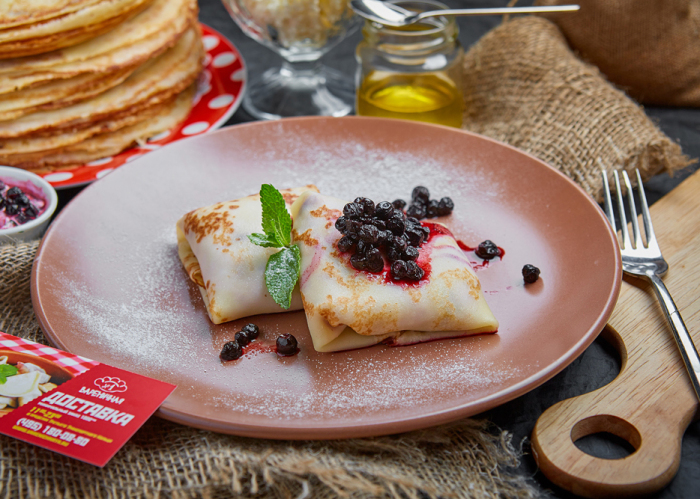 Мало кто сможет сравниться с «Вареничной №1» по широте блинного ассортимента — бренд-шеф Алена Солодовиченко разработала на Масленицу грандиозное меню. Одних только блинов с начинками — дюжина вариантов. За 290 рублей можно стать счастливым обладателем парочки блинов с сыром и ветчиной из индейки, с гречкой и куриными потрохами, с обжаренной куриной печенью и морковью, с мясной начинкой из свинины и телятины с луком, с фаршем из телячьего сердца и риса. Чуть дешевле обойдутся блины с курицей, грибами и луком, тушенные в сливках, — 230 рублей. Чуть дороже — аппетитные блинные мешочки, начиненные жульеном из телячьего языка, лука и соленого огурца, сливок и специй, — 300 рублей. Самая роскошная позиция — блины с красной икрой и сливочным маслом — обойдется в 460 рублей.