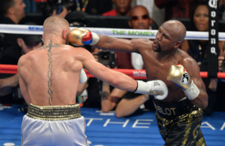 И о размере призовых. Вместе с рекламными контрактами величайший боксер современности Флойд Мейвезер получит около трехсот миллионов евро. Эта сумасшедшая сумма получилась при сложении ста миллионов гарантированного гонорара за участие, плюс доходы от телевидения и спонсоров. К примеру, только наклейки на шортах американца принесли ему более 15-ти миллионов. И, как сообщил исполнительный директор Mayweather Promotions, после нынешнего боя общий доход Мейвезера превысил миллиард долларов. Конор Макгрегор получит за поединок с легендой бокса неслыханные для UFC 100 млн долларов. Бой также побил рекорд по платным трансляциям, собрав более 80 млн долларов. Предыдущий рекорд составляли 72 млн долларов за бой Мейвезера с филиппинцем Мэнни Пакьяо в 2015 году.