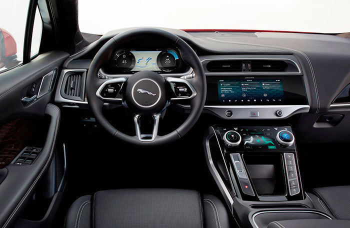 Электрокар имеет просторный салон, в том числе на втором ряду. Конечно, Jaguar I-Pace — не представительский седан, но места даже для трех пассажиров там хватит с запасом. Не обидели в Jaguar переднего пассажира и, разумеется, водителя. Ведь в последних поколениях всех моделей британской марки особое внимание уделяется рабочему месту пилота и связанным с этим опциям.