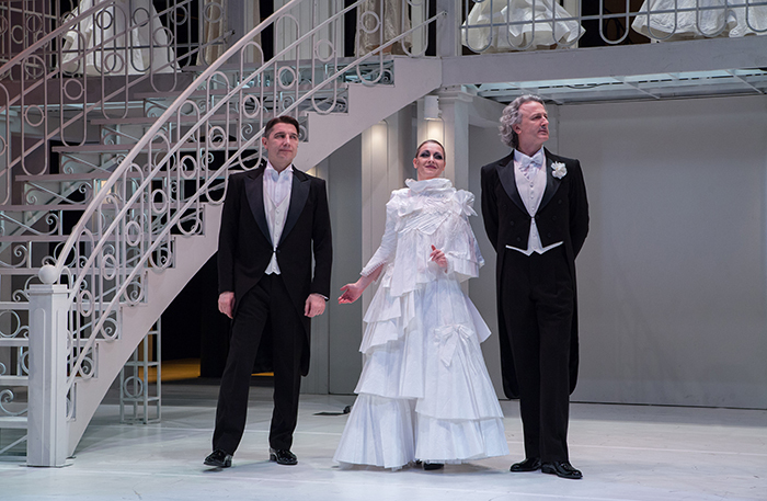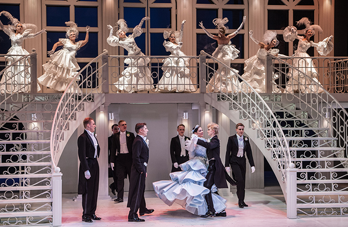 Костюмами — а всего их более двухсот — занимался Валентин Юдашкин. В ярких платьях и замысловатых шляпках соединяются высокая мода и театральная выразительность. Но историк моды Александр Васильев, который был приглашен на премьеру, не стал их комментировать: