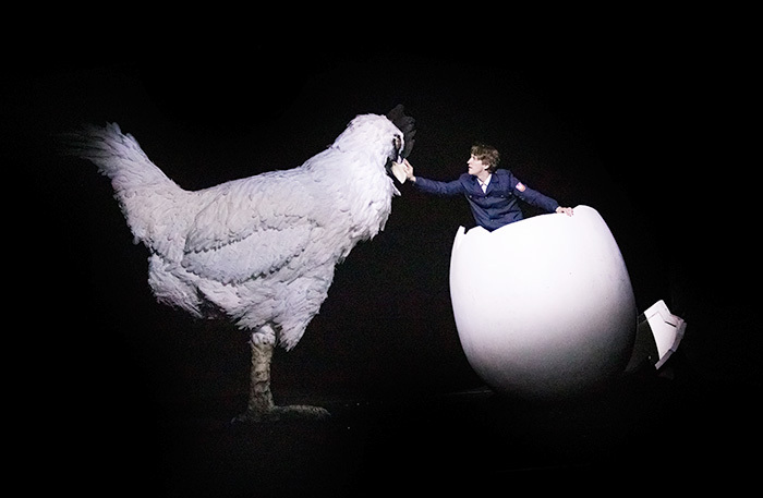Диковинные существа органично вписываются в пространство этой, на первый взгляд, бытовой истории, которую Андрей Могучий решил рассказать именно в Москве — это его второй спектакль в Театре наций.