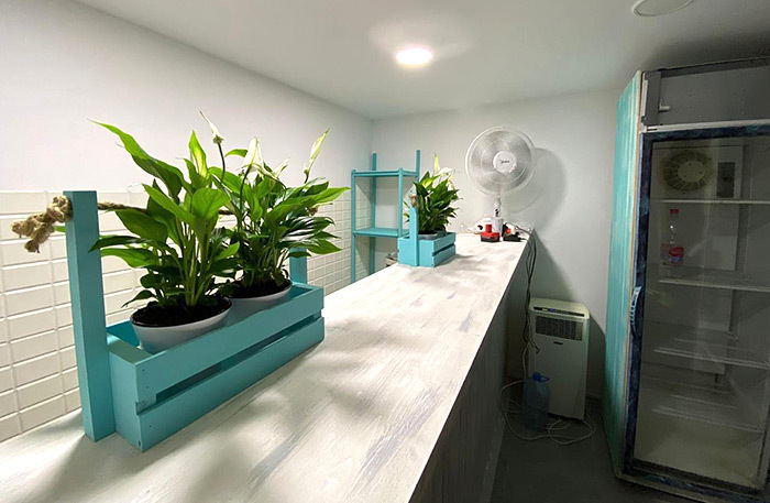 В процессе ремонта сформировался стиль заведения через призму всех этих лет жизни в Азии, через любовь ко всему прекрасному, свободному и главное — открытому, к улыбкам, которых в России порой так не хватает. С цветовой гаммой мы определились сразу: цвет морской волны в сочетании с белым. Моя тайская девушка привила мне любовь к растениям, поэтому мы купили живые цветы и ухаживаем за ними, я сам их поливаю. Кроме этого, дополнили интерьер фруктами, хендмейд-полочками, нашими личными фотографиями из Азии, фото азиатских блюд, а также мест, где мы были.