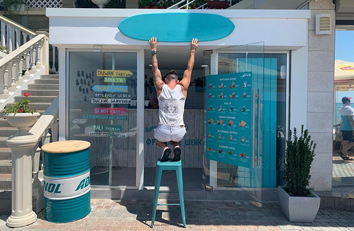 Проблем с тем, чтобы построить кафе в карантин, не было никаких. Были ограничения на большие стройки, а у нас просто два человека работали вечерами в небольшом павильоне. Причем у Миши еще была основная работа, и мы строили буквально до ночи. Сейчас у меня такой график: я встаю в шесть утра, с семи до девяти у меня тренировка в зале, и с 09:15 до 12 часов ночи я нахожусь в кафе.
