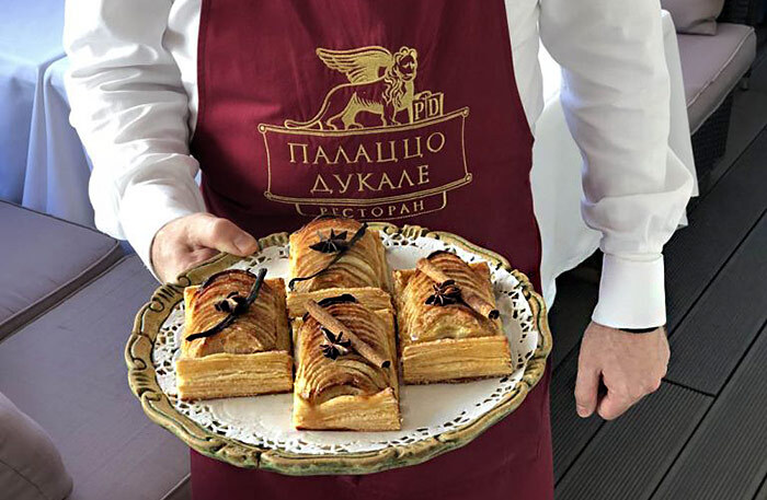 У официантов Palazzo Ducale есть традиция часто и внезапно заглядывать сбоку за бархатно-бордовые театральные шторы вашего джульетто-ромеовского алькова с зеркальным потолком, и, подавая блюда, спрашивать: «Что-то еще вам приготовить»? Вот она, настоящая итальянская комедия дель арте XXI века, она же комедия масок — в 2020 году все официанты ходили в антиковидных масках. Любая итальяно-еврейская мама меркнет перед настойчивостью официантов из Palazzo Ducale. Так часто «Вы хотите еще чего поесть?» не спрашивала меня за всю мою жизнь ни мама, ни папа из Одессы, который обижался, если я на семейном ужине в 22:00 не ела фирменный наполеон. Когда официант заглянул за шторы пятый раз, я по-петербуржски революционно спросила: «Может, продекламируете нам Шекспира? Тут у вас такой антураж, занавес бордовый». Но Москва не Петербург, где каждый студент на Казанской в ночи зачитает вам сонет № 28 или начало «Ромео и Джульетты».