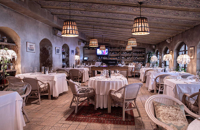 Зато к гостям каждый вечер выходит несменяемый с 2003 года шеф Тино Демонтис, он родом с солнечной Сардинии. И когда он вас обнимает и улыбается, не только прекрасная Италия встает у вас перед глазами, но и вечная молодость, которую хочется провести в Chanel, Van Cleef среди внуков в худи во время своего 70-летия в Palazzo Ducale под прекрасную музыку Роберто Кардилло.