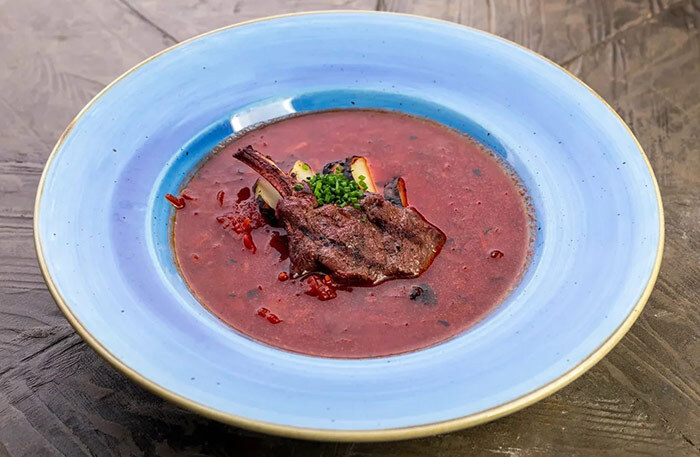 Обязательно возьмите «водочный дегустационный сет» (набор блюд а-ля рюс к водке), он в меню до конца января. Это солидный такой сет, с щедрыми порциями. Его смело можно брать на двоих. Огуречные хрусты с тремя видами икры (щучья особо хороша), смерреброд из черного хлеба с сельдью, уха из петуха. В дополнение можно взять мамин борщ (огромная порция), а также попробовать что-нибудь из дичи: олень, кабан, лось.