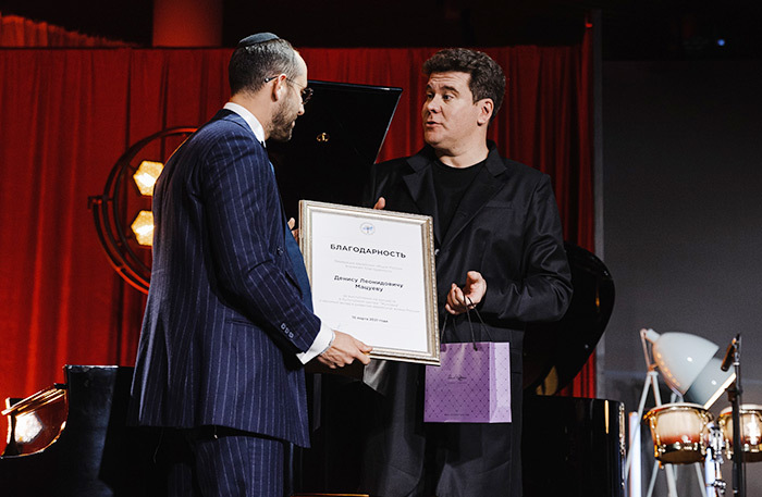 В рамках мероприятия Еврейского делового клуба SOLOMON.help 15 марта в Москве в Еврейском культурном центре «Жуковка» прошел концерт народного артиста РФ, лауреата Государственной премии РФ, лауреата Международного конкурса имени Чайковского Дениса Мацуева.