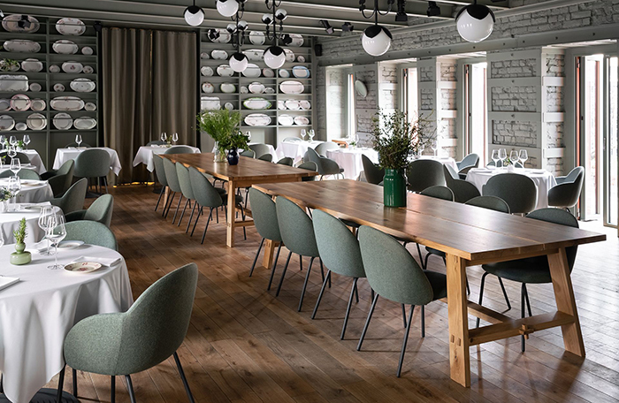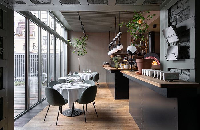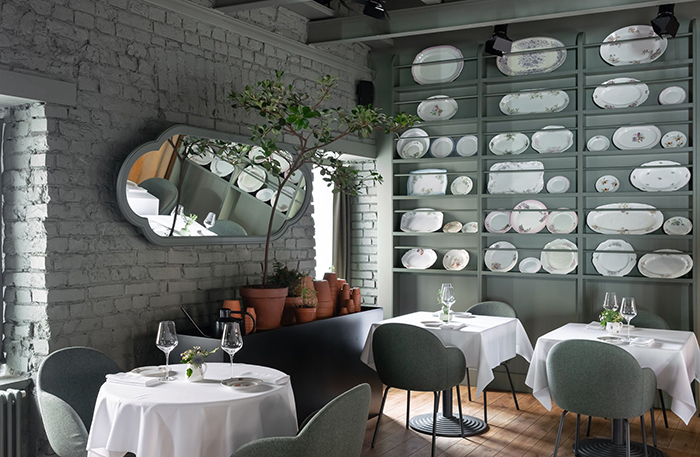 Цвет, который доминирует в ресторане, по пантону называется Wedding Bells, тоже оттенок любимого петербуржцами зеленого. В интерьере используется много живых и сухих цветов. Все это отлично сочетается с белыми скатертями и разбавляется ярко-желтой форзицией. Посуда тоже с цветочками, ее собирают везде — от знаменитого блошиного рынка «Уделка» до антикварных магазинов в Финляндии. Из-за обилия цветочных мотивов и композиций место выглядит немного по-девичьи, поэтому в ресторане преобладают девушки. Это немного непривычно для Петербурга, спорю, что официанты играют в игру «угадай, сколько мужчин в зале». Но тем не менее несколько мужчин в зале присутствуют, и они достаточно серьезные. Как только потеплеет, ресторан распахнет двери на чудесную веранду во внутреннем дворе.