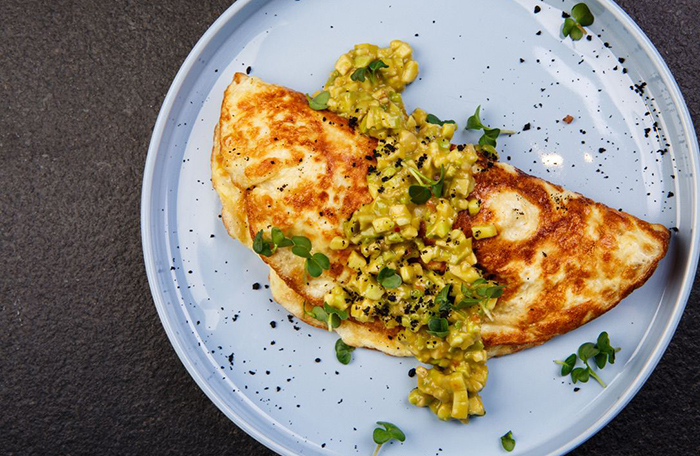 В новом гастрономическом обзоре — Sizzle на улице Рубинштейна, «Сад» на Петроградской стороне, оттенки зеленого и латунь, омлет с крабом и сырники с карамельным соусом