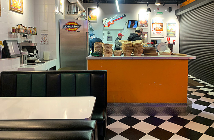 Интерьер кафе выглядит как декорации к фильму Роберта Родригеса и Квентина Тарантино «От заката до рассвета». На открытии бара было 1,5 тысячи человек. Инфернальный декорасьон, аппетитные блюда американско-мексиканской классики. Бургеры, тако, буррито, чили кон карне, кесадильи и, конечно же, молочные коктейли. Все дается в разных вариациях и в различных размерах. Хотите перец «Каролина Рипер» остротой в 1,5 млн единиц по шкале Сковилла? Тогда для вас специальное Hell menu. Для сравнения: табаско — это всего лишь 35 тысяч единиц, а перчики халапеньо — это детский сад в пять тысяч единиц.