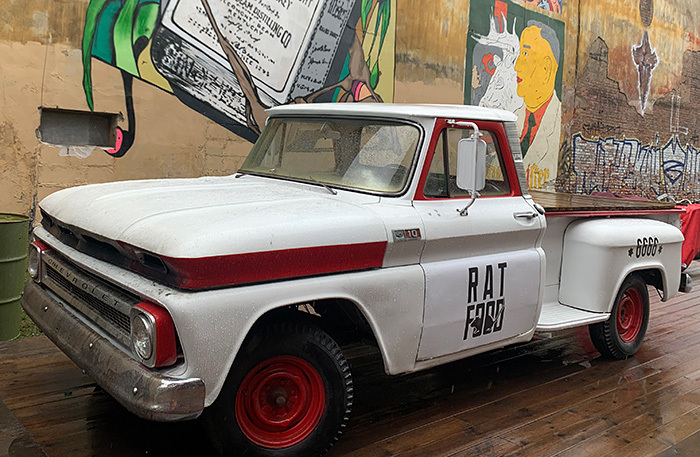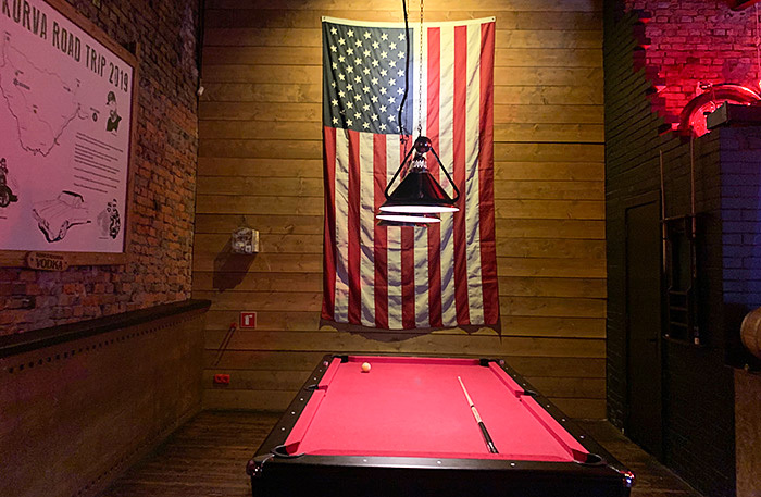 Из D.A.L. тайные знаки на стенах привели нас в Branch Garage. Любите мотоциклы, старые авто и бильярд с красным сукном под американским флагом? Тогда это нетривиальное место в Петербурге для вас. Branch Garage находится на улице Печатника Григорьева, дом 12.