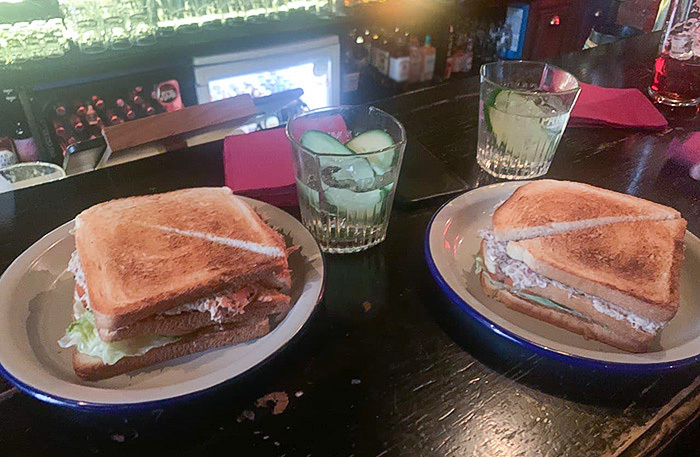 Следующим пунктом в маршруте стал Gypsies & Jews («Цыгане и евреи») на улице Ломоносова, дом 4. В баре работают выходцы из «Бекицера», так что ребята знают, как весело пить и вкусно есть. Здесь надо обязательно заказать сэндвич с тунцом, в меню он так и называется: «Тот самый сэндвич с тунцом». На этот раз я была с двумя своими петербуржскими друзьями. К моменту визита к «Цыганам и евреям» мы уже вкусно отобедали в ресторане «Грузия + Италия» на Московском проспекте, дом 200. Кстати, когда их официант по имени Эдуард Пушкин нас предупредил, что столик свободен всего на четыре часа, я удивленно вскинула бровь: за два часа мы точно уложимся. В итоге нас вежливо выпроваживали, поскольку пришли другие гости. Эдуард припомнил моим друзьям, как они просидели в заведении «Грузия + Италия» девять часов. Вот после такого сытного грузинско-итальянского обеда мы оказались у «Цыган и евреев».