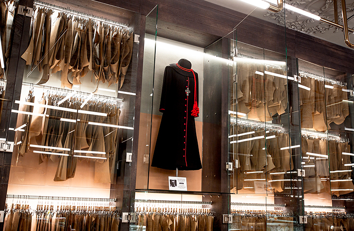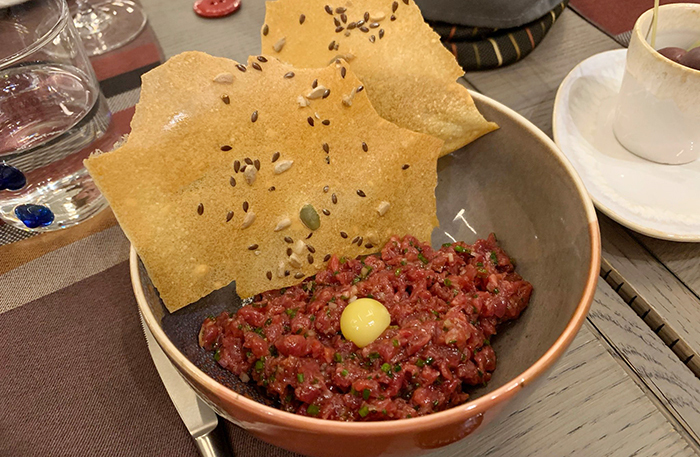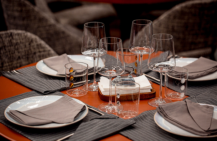 В ресторане Sartoria Lamberti при отеле Ritz искусство, красота и гастрономическое разнообразие встречаются в одном месте. Что прекрасного в Италии? Правильно! Еда и мода. Sartoria, ударение на i, переводится с итальянского как «маленькая портняжная мастерская». Sartoria задумывалась удивительно мудрым Уиллиамом Ламберти как гастрономическое ателье. Здесь вы найдете феноменальное внимание к деталям концепции. Номерки в гардеробе выполнены в виде кусочка портняжного метра, визитки выглядят как гигантские пластиковые пуговицы, вдоль стен развешаны бумажные выкройки, спинка дивана напоминает сложенную ткань, в столовых приборах проделаны игольные ушки, а прессом на бумажных салфетках служит маленький утюжок для манжетов. И настолько тактильно приятных table-runner (тканевых дорожек на стол) я не встречала даже в самых дорогих заведениях.