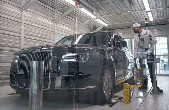 Максим Кадаков главный редактор журнала «За рулем» «Это запуск производства обычных автомобилей Aurus Senat со стандартным силовым агрегатом, с мотором V8 гибридной версии. Это то, что мы уже прекрасно знаем, и, в общем-то, это фактически перенос со штучного, мелкосерийного производства в чуть более крупносерийное, из НАМИ на сборочную площадку в Елабуге. Степень локализации на данный момент достигает 53%, и задача в ближайшие несколько лет — поднять ее до 70% или 80%. Половина комплектующих деталей и так далее — российского производства, половина — покупное. В частности, например, алюминиевый блок цилиндров двигателя, головка блока и многие другие комплектующие приходят из-за границы».