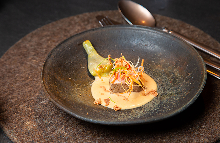 Наблюдать, как эти шефы готовят, не получилось: кухня находится далеко от столиков гостей. Зато шефы по очереди подходили к каждому гостю с презентацией своего блюда из сета. Так что руки шефов удалось разглядеть. Красивые руки, перспективные.