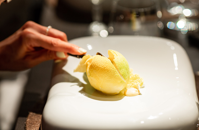От итальянских запахов мы сразу забыли про свои безглютеновые диеты. Несмотря на то, что это был гастрономически выверенный сет, все гости попросили добавки паккери и карбонары. Нино давно живет на этом свете, потому для своих друзей делал пасту в огромной, почти метровой, сковороде. Всем досталась добавка и настоящее сицилийское счастье. После пасты еще шел тунец с соусом из боттарги и артишоками. И кастолетта из ягненка. И десерт в виде солнечного сицилийского лимона — в нем наблюдательные читатели узнают lemon shaped dessert знаменитого кондитера Cedric Grolet, но поскольку ужин был дружеский и почти семейный, придирку по новизне идеи и технике мы опустим. Пару лет назад, посмотрев с ребенком фильм «Крестный отец», мы отправились на Сицилию смотреть именно эти знаменитые гигантские лимоны. Так что десерт «лимон» свою задачу по визуализации Италии выполнил блестяще и пустил очередную амурную стрелу в мое гастрономическое сердце.