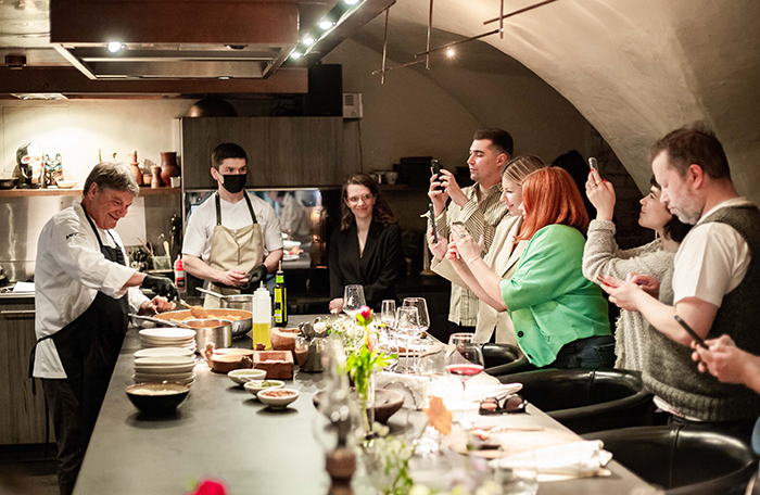Мне нравится традиция, когда шефы устраивают дружеские обеды и ужины в четыре руки. Это всегда весело и с историями. Как правило, такие обеды и ужины проходят в формате сетов и рассчитаны на 10-18 человек, значит, каждому участнику будет дарован индивидуальный подход, а особо любопытным друзьям (это я) — шанс задать каверзные вопросы о технике и рецептуре.