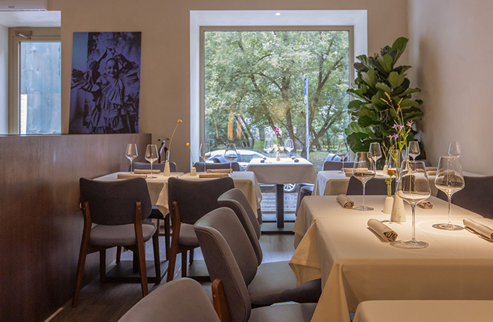 Жаль, что цифровые фотографии пока не научились передавать вкус. Если вы в Москве, загляните в «Алису» на Патриарших. Место идеально подойдет для свидания: спокойный благородный интерьер, огромное, в полстены, окно, красивые арки, белые скатерти, нежный выверенный декор и красивые голубо-серые стулья. Над фартуком Артема Чудненко можете, конечно, улыбнуться отдельно: нелепый цветастый узор на шефе при ближайшем рассмотрении оказывается сделанным из той же ткани, что и концептуальный рисунок на диванах ресторана. Но татуировка Артема на левом предплечье «Не расслабляйся» при кителе с коротким рукавом говорит о том, что парень имеет перед глазами и в душе серьезный мотивирующий канбан ежесекундно. Если будете в Красноярске, обязательно загляните к Роману Киселеву в ресторан 0.75 Please | Wine&Kitchen. В моем виш-листе при посещении Красноярска он отмечен в первой тройке.