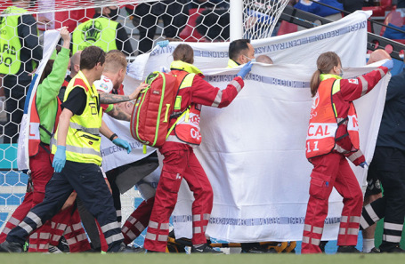 Полузащитник Сборной Дании Кристиан Эриксен потерял сознание в конце первого тайма во время матча со Сборной Финляндии в рамках «Евро-2020».