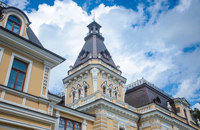 Как гласит официальный пресс-релиз, двухэтажный особняк был возведен в 1902 году по проекту архитектора Анатолия Ковшарова, имел весьма бурную биографию, но с начала нулевых пустовал и разрушался. Вот в таком виде его в 2007 году и приобрел на торгах Фонда имущества Петербурга предприниматель Николай Казаков, совершенно, конечно, не рассчитывавший на 11 лет реставрации. Но реализация проекта затянулась из-за судебных тяжб с ОАО «Транснефтепродукт», которое арендовало дачу на 49 лет. «Увидел, что на аукционе продается «заброшенный дом» — дача Леоновой, решил участвовать в аукционе и победил. Однако не все было просто потом. За признание результатов аукциона судился около четырех лет. И только затем начался непростой многолетний процесс реставрации, которая всегда обходится в два-три раза дороже нового строительства», — рассказывает Николай Казаков.