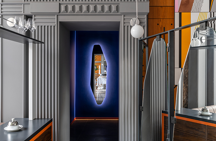 Внешне ресторан получился непримечательным для любителей утонченной эстетики, даже немного странным. Видно, что владелец — без художественного образования, но харизматичный и уверенный в себе — пытается участвовать в дизайне интерьера. Но ресторан публике понятен. В интерьере присутствуют черты московских советских помещений, китайский антиквариат, сухоцветы, батареи пустых винных бутылок, современное искусство от российских художников и жуткий оранжевый туалет с золотой рыбой. Доминируют изысканные белые скатерти и красивая посуда — в подаче эстетика соблюдается. К сашими подается подставка для палочек с живой веточкой декоративного растения, ножи к мясу опираются на распил в куске розовой соли.