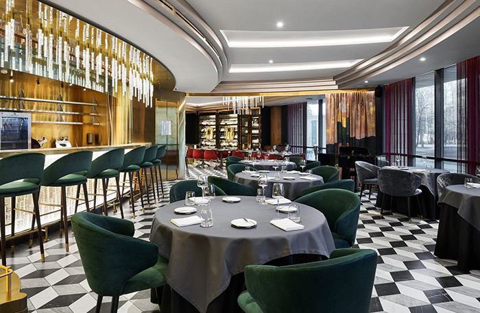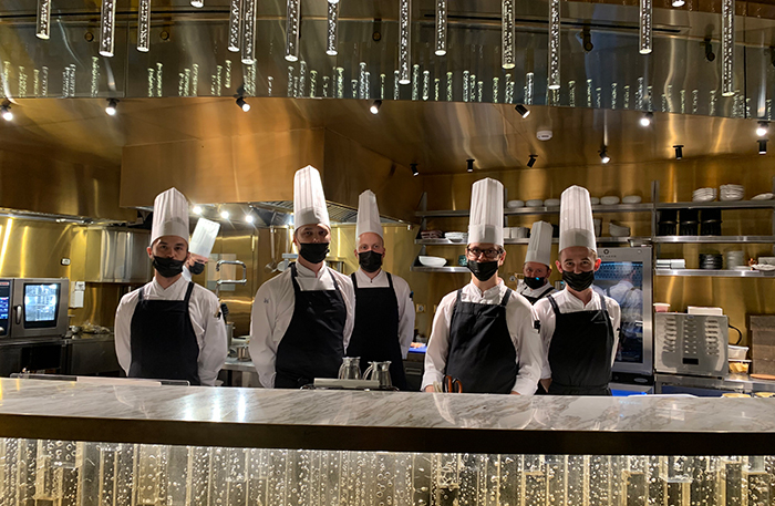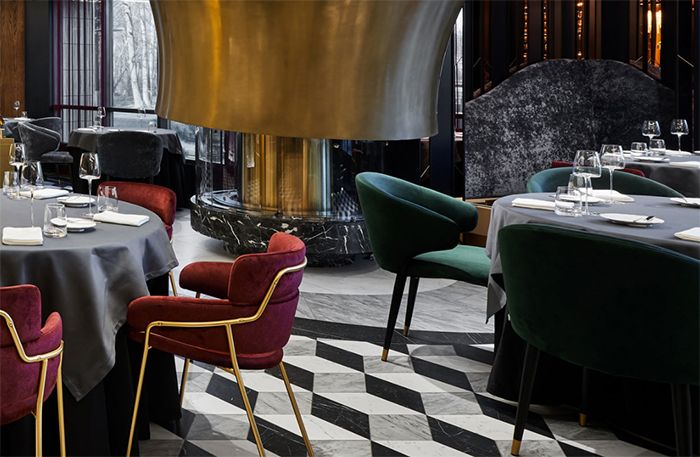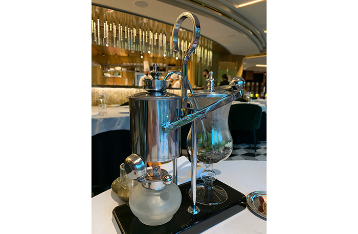 Мы ранние гости, поэтому отдельное удовольствие наблюдать, как восемь поваров в белоснежных высоких колпаках готовят для нас двоих. Благодаря открытой кухне можно наблюдать выверенные, несуетливые движения.