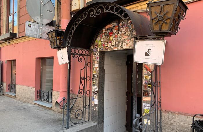 «Шаверма» на Литейном проспекте, 64/78. На углу Невского и Литейного розовое здание, крошечное помещение, в котором даже в два часа ночи стоит очередь. Легендарная шаверма с соусом карри, моя любимая, в лаваше стоит 220 рублей. Ох, сколько футболок залито этим прекрасным соусом. Есть шаверму мы уходим во двор-колодец на железную лестницу.