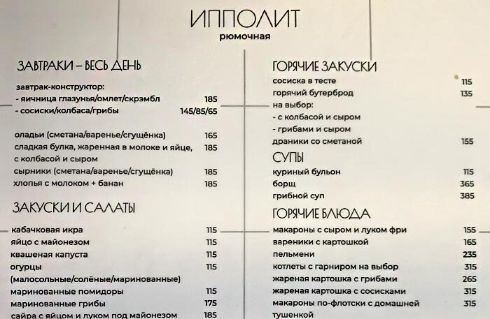 Рюмочная «Ипполит» — легендарная рюмочная, куда надо ходить за одним единственным блюдом — пюре с котлетками. Это очень вкусно, правда, получается чуть выше бюджета: 315 рублей.