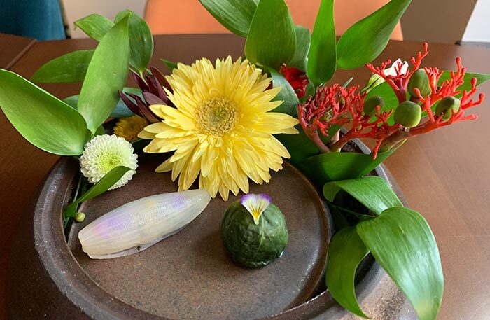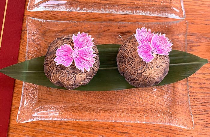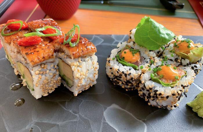 В меню свежайшие роллы, сашими, горячие блюда, а на десерт попробуйте необычные мочи: они мягкие, с необычным узором и цветами — 650 рублей за две штуки.