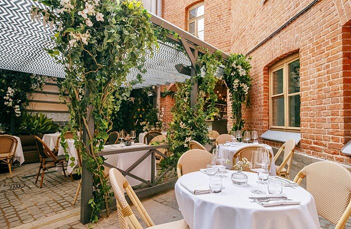Ресторан Sea, Signora на Большой Морской. Этим летом тут заработала тихая летняя веранда: отреставрированный двор-колодец утопает под тканевым балдахином-парусом. Завтраки от Антонио Фреза — это яйца Бенедикт с лососем и красной икрой или с прошутто котто и черным трюфелем, сырники, израильский кекс «бабка». Трогательная деталь: в меню рукой Антонио написано Сon Amore (с итальянского «с любовью»). Игристое в креманке и нарисованное рукой шефа сердце обязательно поднимут настроение. В Sea, Signora цены на уровне и даже чуть выше московских, место для Петербурга дорогое, но респектабельная публика гарантирована.