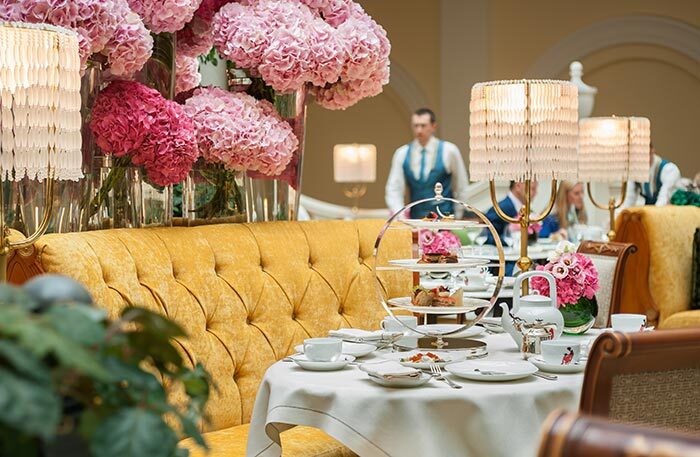 «Чайная гостиная» Four Seasons Lion Palace — центральная зона, утром здесь накрывают роскошные завтраки. Наверное, так ел Юсупов: блинчики, красная икра, красная рыба двух сортов, омлеты, фрукты, ягоды, всевозможные творожки и овощи — все в очень красивой сервировке. Я люблю здесь завтракать: залитый светом атриум, мягчайшие ковры и уютные желтые диваны вокруг роскошных цветов. Пожалуй, лучшее начало дня. Цены вполне приемлемые для пятизвездочной гостиницы: от 1200 до 3200 рублей в зависимости от вида завтрака или же выбирать отдельные позиции по меню. Днем советую заглянуть на традиционный five o’clock: парадная сервировка, воздушные пирожные под звуки настоящей арфы.