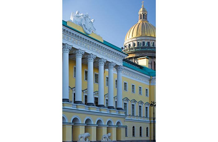 Желтое здание с белыми колоннами, построенное по приказу Клеопатры Ильиничны Лобановой-Ростовской, всегда вызывало у меня детскую неподдельную радость: кудрявые белые львы, максимальная близость к Исаакиевскому собору, моей любимой Чернильнице, прекрасная реставрация здания и свой особый запах роскошной жизни. Зимой в холле ставят самую красивую в городе новогоднюю елку, а на Пасху я всегда везла отсюда в Москву вкуснейший панеттоне в идеально красивой коробке.