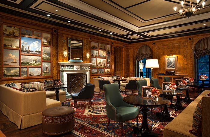 Респектабельный бар Xander подойдет для вечернего разговора с бокалом вина или коктейлем. Однажды для нашего совета директоров мы устраивали тут концерт барочной музыки: абсолютно инфернальное шоу с актерами в костюмах эпохи Екатерины II, яркий грим на выбеленном лице, клавесин и очень странная для современного уха манера исполнения. Матушка-императрица Екатерина II сама любила писать оперы, их нам тоже исполнили. В Xander проводятся винные дегустации, но я обожаю их зимой, когда в камине потрескивает огонь, а деревянные настенные панели и уютные диваны переносят тебя в далекие миры.