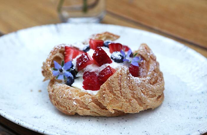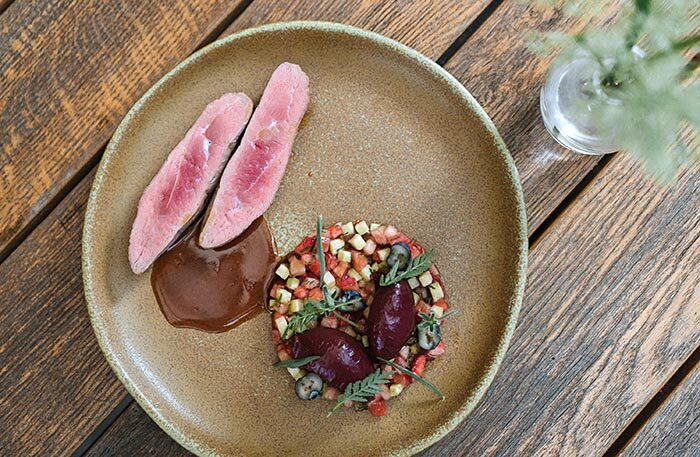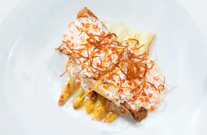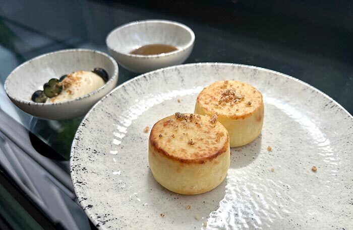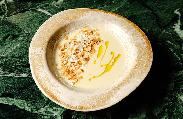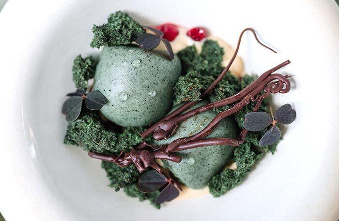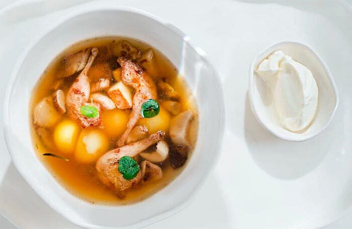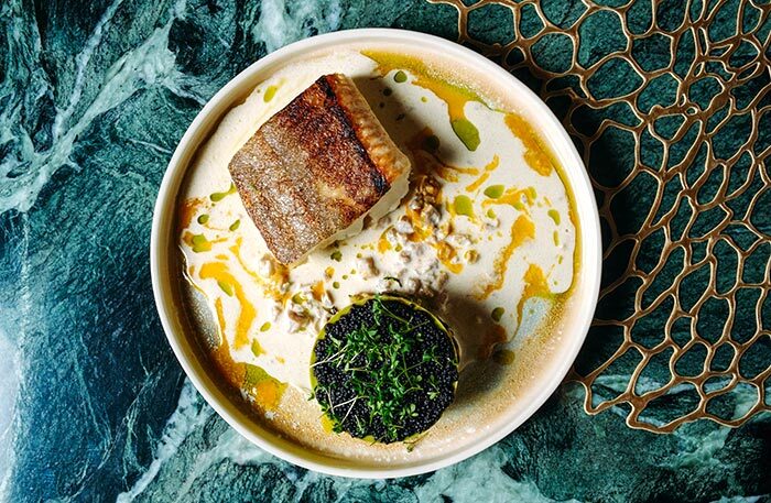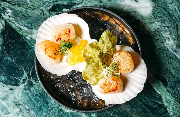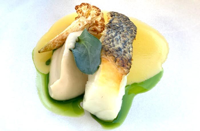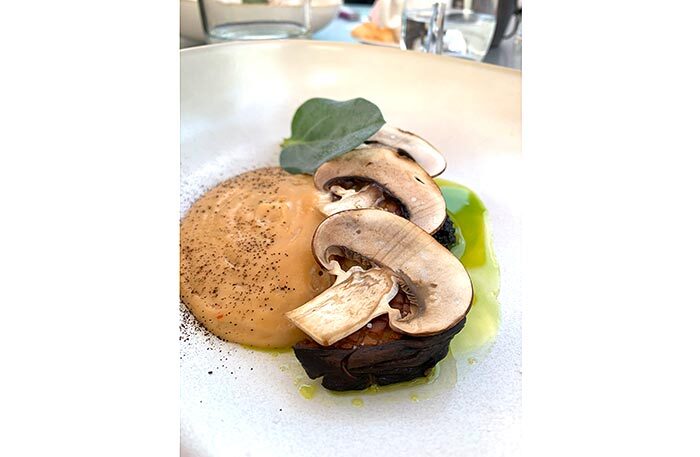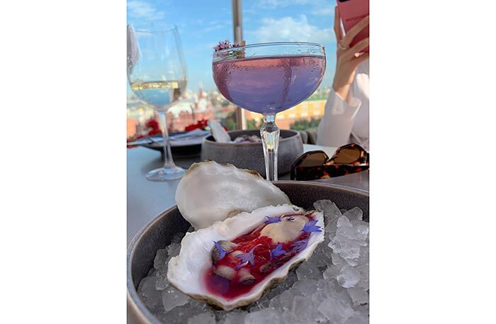 Обязательно попробуйте устрицу со свеклой, чилийский сибас с муссом из сладкого лука и цитрусовым соусом и два блюда-обманки: арбуз, который выглядит как перец рамиро, и блюдо под названием «Королевский устричный гриб», который я прозвала «радость вегана» — в этом блюде все только из грибов, хотя выглядит как баклажан, а пюре из королевского устричного гриба сводит с ума. Шеф-кондитер Анна Федяй использует добавленный сахар по минимуму, ее десерты легки и невесомы, а тарт с ревенем — божественен.