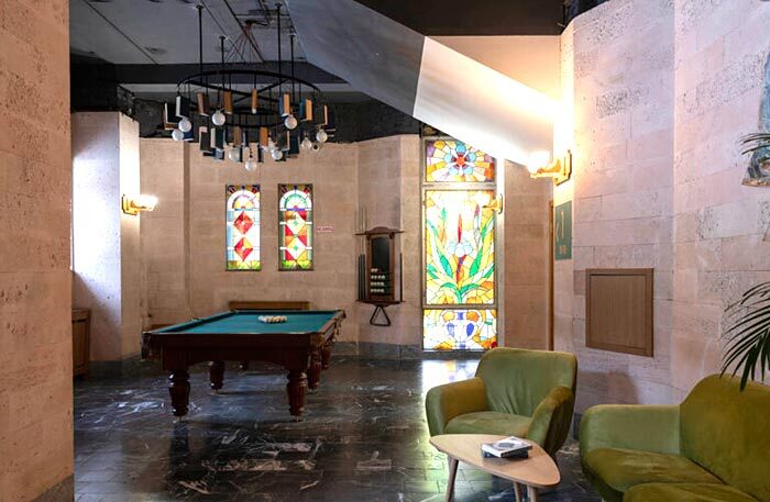 На веранде отлично пишется, поэтому часто можно встретить людей с ноутбуками. В отеле созданы разные художественные атмосферные зоны с картинами и книгами, здесь очень любят устраивать мероприятия, концерты и фотосессии. Вот только персонал в отеле «Рихтер» не очень дружелюбный и почему-то смотрит надменно, словно вопрошая: «Вы тут что забыли?»