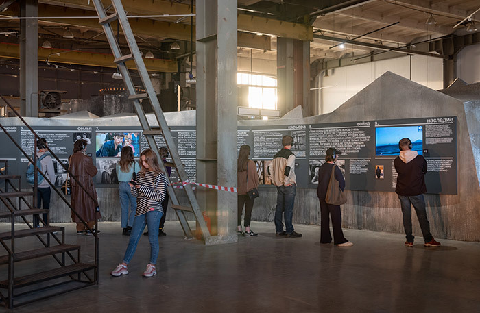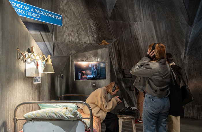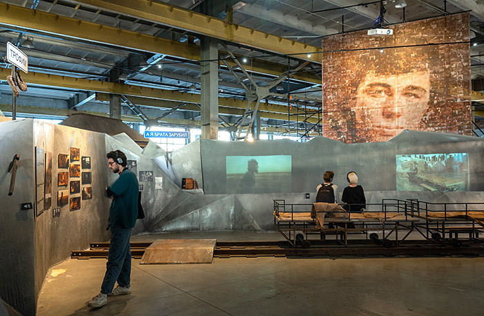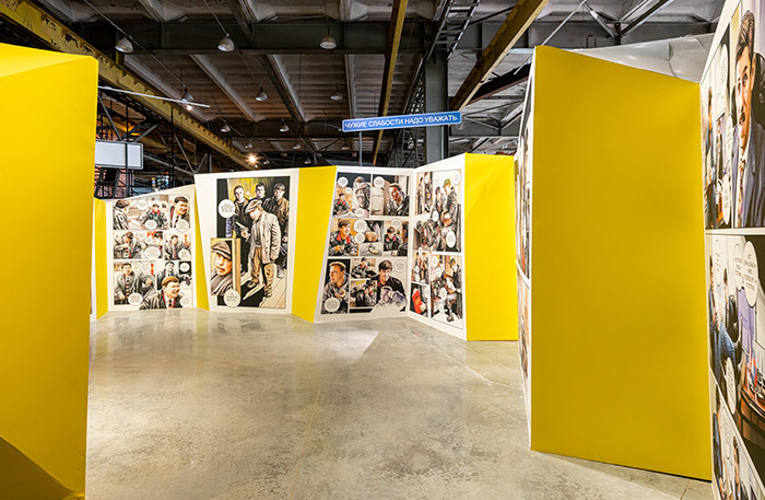 Выставку проводят в пространстве «Севкабель порт» на берегу Финского залива. Это Васильевский остров — любимое место Балабанова в Петербурге. Помимо кинокомпании СТВ, среди организаторов — бюро Planet9, оно делало в Москве выставку о Викторе Цое. Но балабановская, по ощущениям, менее пафосная. Она построена как путешествие. Названия фильмов написали на белых табличках, как указатели населенных пунктов на дороге. Посетители получают плееры, по пути слушают любимую музыку режиссера, смотрят фрагменты кино, в том числе короткометражек и ученических работ. Выставку задумали еще два года назад, не планировалось, что она будет как-то перекликаться с текущей повесткой, говорит ее куратор Татьяна Гетман:
