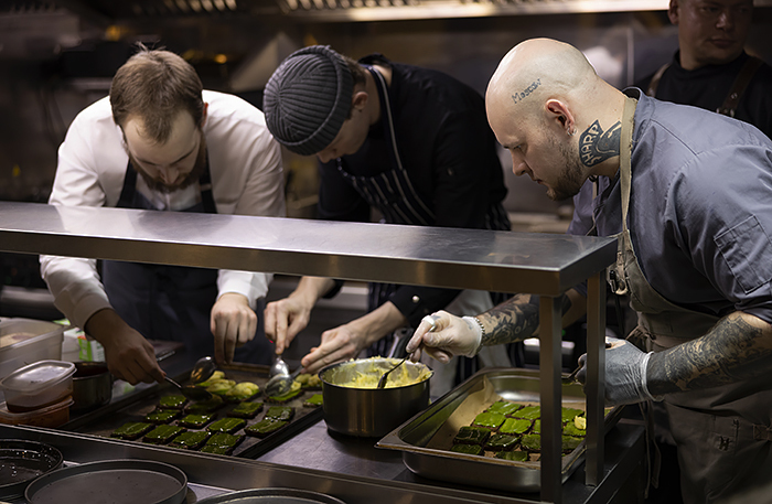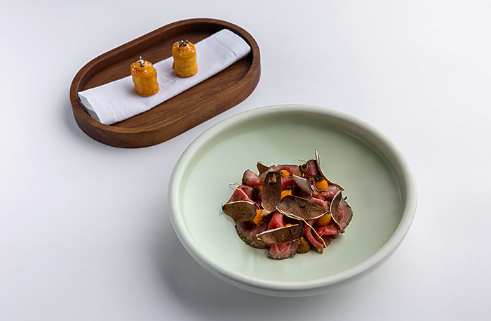 Фирменный почерк шеф-повара Артема Естафьева — эксперименты с текстурами и архитектурная форма блюд. Гастрономическое созерцание и две звезды «Мишлен». Краски и вкусы осени можно обнаружить в блюде «свекла и инжир»: свекла запекается в соли, после чего ее дополняют зеленым инжиром, козьим сыром и щучьей икрой, для этого блюда используется фундучный желток и копченая сметана. Высокохудожественный картофельный гратен с гелем из копченого желтка и черной икрой подается к великолепной говядине. Стоит обратить внимание на луковый пирог, те, кто следит за творчеством Артема, знает любовь шефа к этому продукту. Провести вечер в одном из самых нарядных ресторанов Москвы — лекарство для поднятия энергии.
