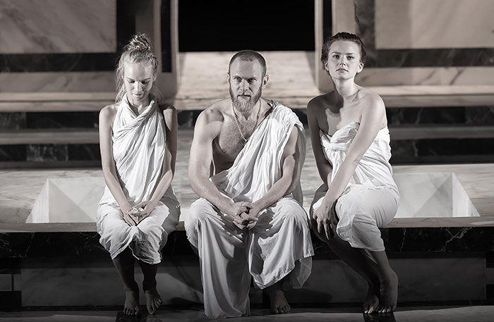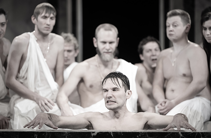 Режиссер решил поместить героев «Ревизора» в римские термы. На сцене — парная с бассейном. Получилась универсальная история, в которой обнажаются не только тела, но и души. Продолжает Сергей Женовач: