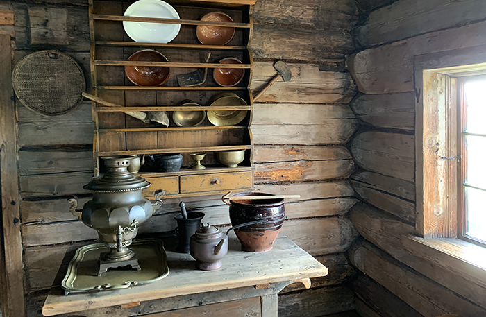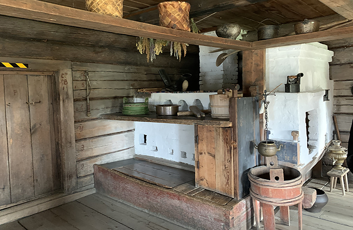 В правой части деревни — Русь XVIII века. Сюда свезли исторические деревянные дома из Архангельска и Вологды. Благородные серые бревна. Обережные славянские узоры. В каждом доме расположилась своя ремесленная мастерская: гончары, ткачихи, кузнецы, берестяных дел мастер, травники. Каждый мастер расскажет историю и секреты своего ремесла. Обязательно загляните в дом музыканта и к мастеру Константину — он делает архангельские козули — разноцветные пряники, которые поморы делали на Рождество. Пряники делали в сентябре-октябре, и это было первое угощение на рождественское утро после окончания поста, ведь в украшении использовался яичный белок. У каждого пряника свое назначение. Я взяла петушка, курочку и задорную коняшку. Константин мне сказал нужные приговоры, так что, если я выйду замуж и получу повышение по работе, я вам всенепременно расскажу, как работают эти волшебные пряники. Константин — лучший краевед из тех, что я встретила в Мандрогах: рассказал про северный семейный уклад. Мудры были предки и очень хозяйственны. Семеро по лавкам, дети — на полатях. Бабий кут — уголок кухни, куда мужчин не пускали. А дом был настоящая крепость: запасы еды и воды помогали перенести недельный снежный занос.