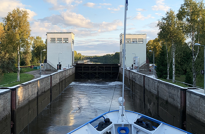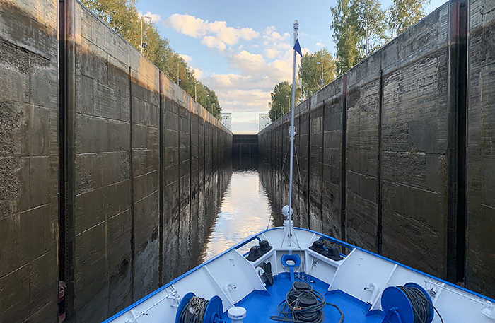 Нам повезло с погодой: бабье лето, солнце, теплый воздух с удивительными осенними запахами. Озера Ладога и Онега — бескрайние, как море. Кстати, для прохода по Ладоге капитанам судов требуется морская лицензия, ведь Ладогу штормит, как море. Но нам повезло: все дни озеро было идеально, как зеркало, с глубокой синевой.