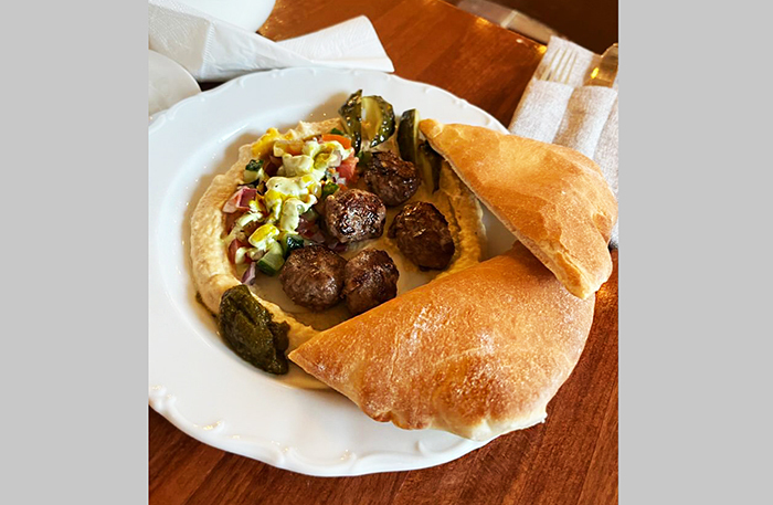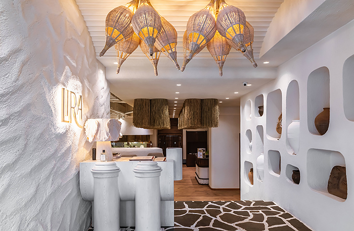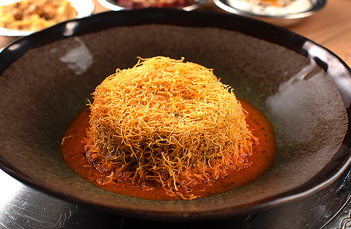 И, конечно, какой Восток без приятных углеводов? Гезлеме — традиционное блюдо турецкой кухни в виде лепешки с начинкой. В Lira рецепт переоформили: между тончайших слоев теста закладывают моцареллу и шпинат. Гезлеме выпекается на большой сковороде, лепешку надо есть горячей. На десерт берите шелковое бадем-суфле и баклаву-чизкейк с впечатляющей горой фисташек. Вокруг приятный для глаза интерьер с деталями и белоснежными арками. Чувствую себя царевной Будур.