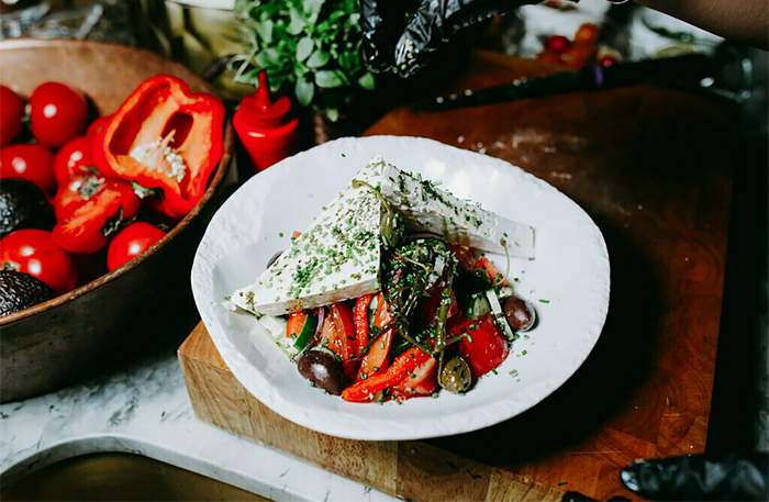 Меню обширное. В его основе — блюда по семейным рецептам шефа Никиты Брехова. У Никиты греческие корни, и благодаря его деду, который когда-то бежал из Солоников в Таганрог, в Москве появился самый вкусный греческий салат. Порция небольшая, внутри вкуснейшие помидоры и огурцы, заправка на 25-летней бальзамике и карамелизированные оливки. К греческому салату отдельно приносят фету, официант ее вам отрезает, не стесняйтесь попросить побольше. Хороши осьминог на огромном блюде, жареный халуми, чипсы цукини/баклажан, мусака и сулваки из ягненка. Это я вам только десятую часть перечислила. В хлебной корзине берите тонкую сухую лепешку из полбы с орегано и макайте ее во все соусы, оставшиеся после блюд. И гарантирую — ваша радость преумножится. А вот десерты я не оценила: для меня все это слишком сладко. Кстати, в Greeks можно пить коктейли по мотивам подвигов Геракла.