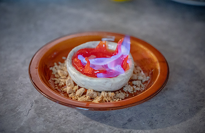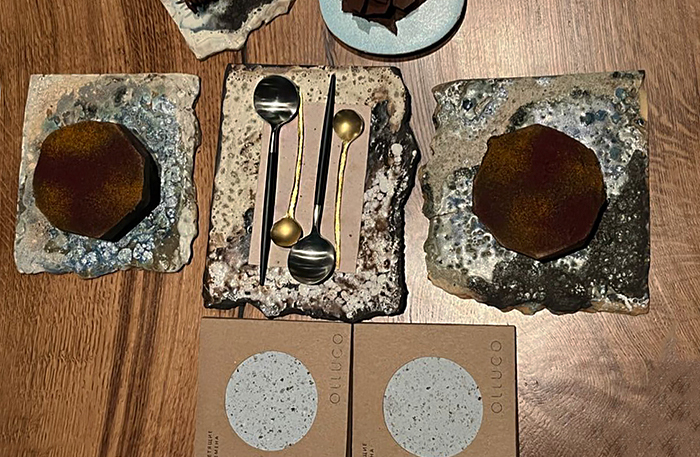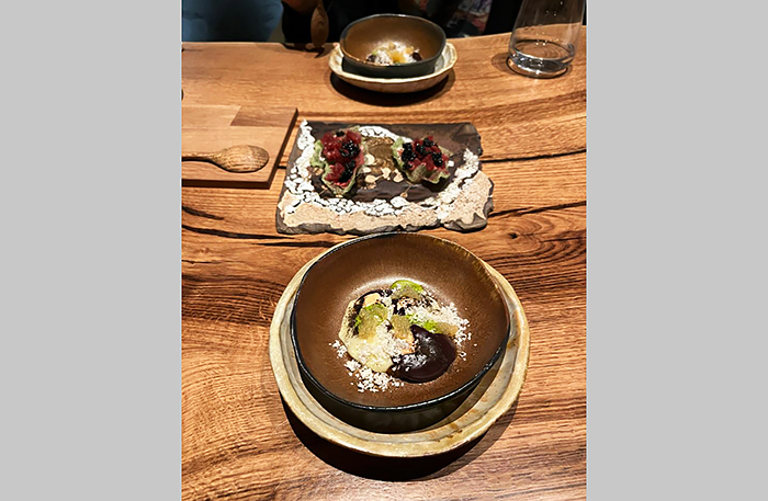 Шаманские песнопения, дышащий огнем камин. Огромный гранитный бар-куб, как сюда затащили такую махину — загадка. Сейчас в Olluco два сета: «Летящие мгновения» и «Территория». Также есть меню а-la carte.